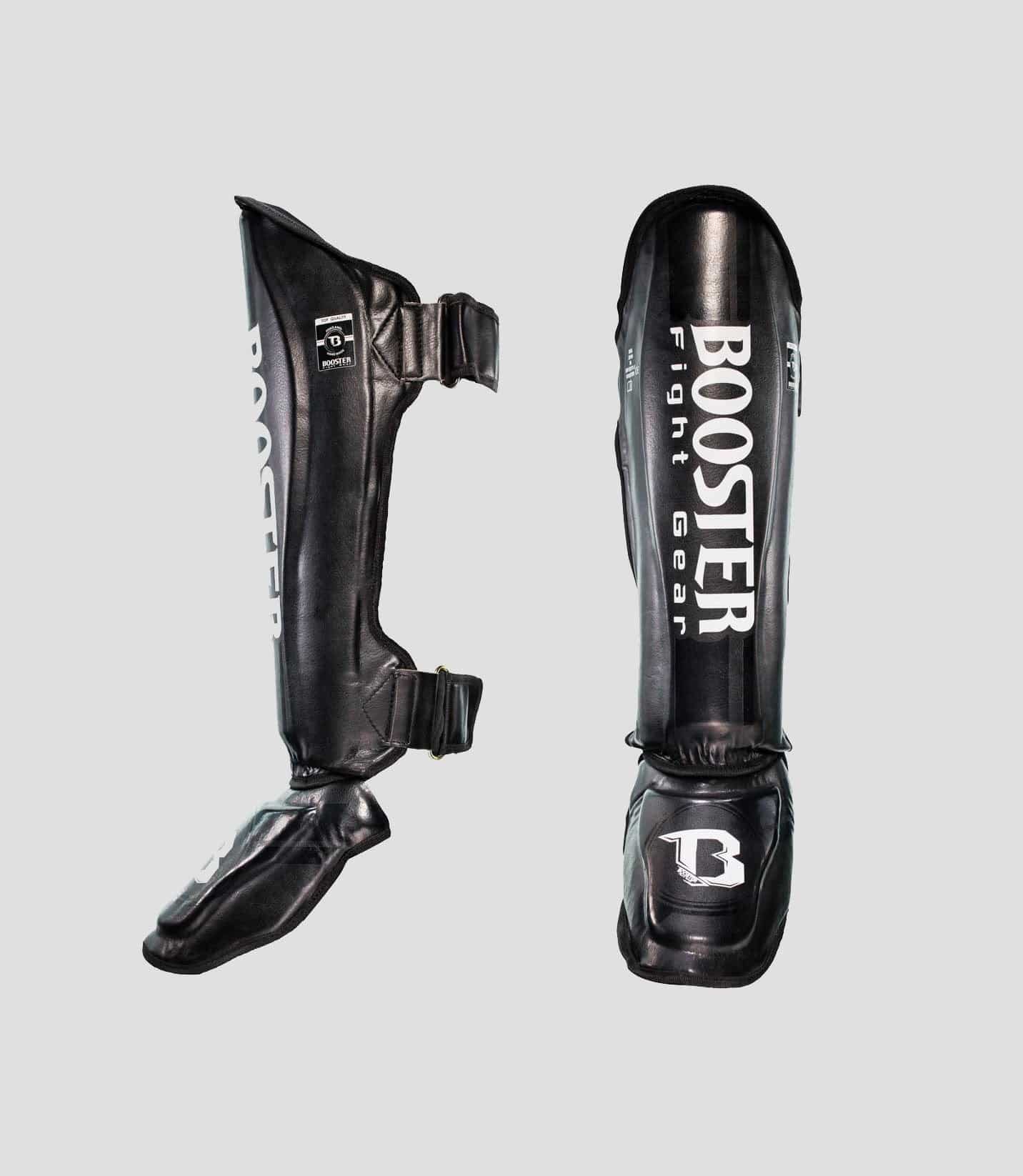 Booster-Kickbox-Schienbeinschoner mit stabilem Haken & Schlaufenverschlüsse. Die Schienbeinschoner werden komplett in Thailand handgefertigt und bestehen aus Kunstleder. Neben einer aus mehreren Lagen bestehenden Schienbeinpolsterung verfügen die Schienbeinschoner auch über eine Polsterung an Fuß und Knöchel.