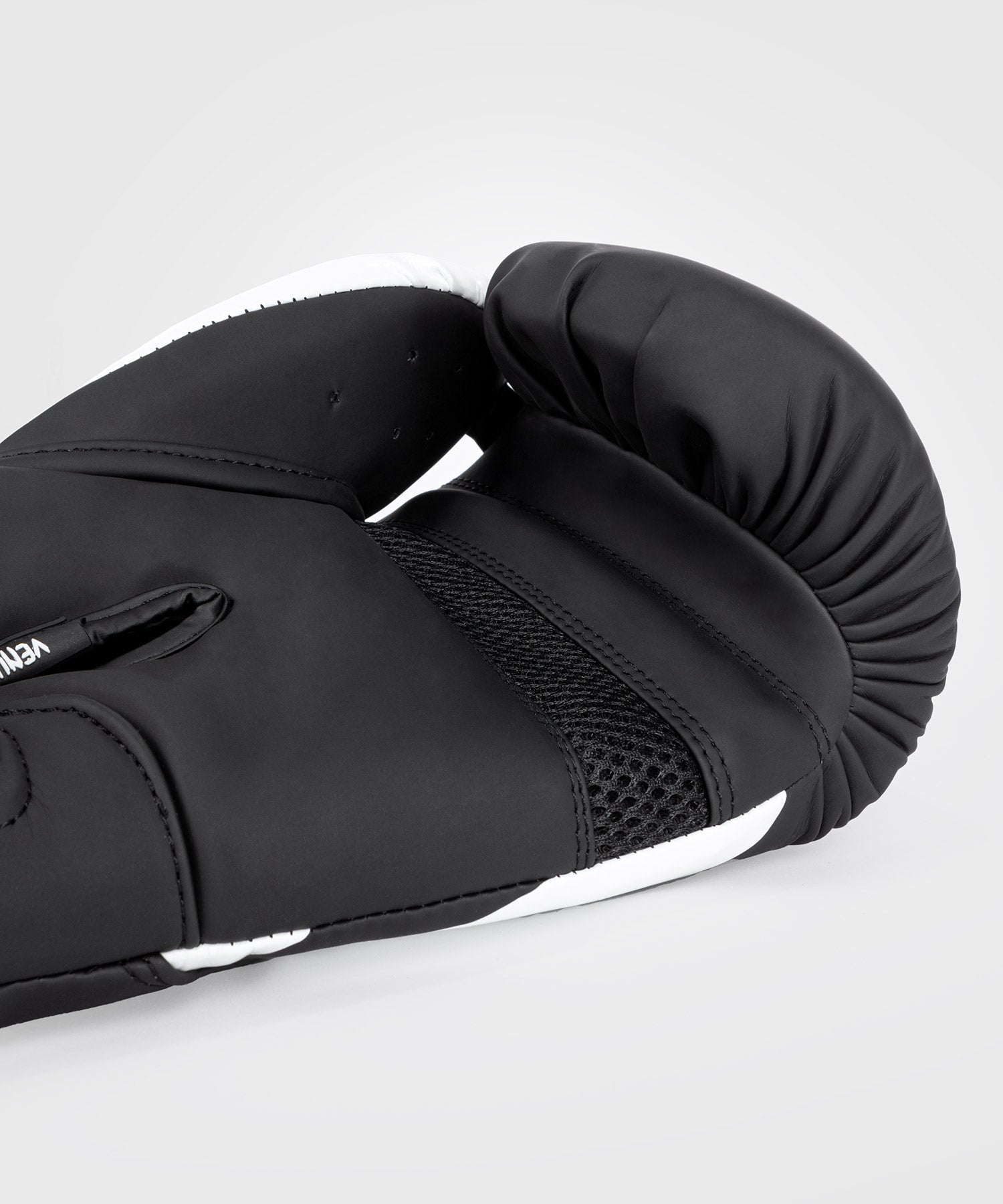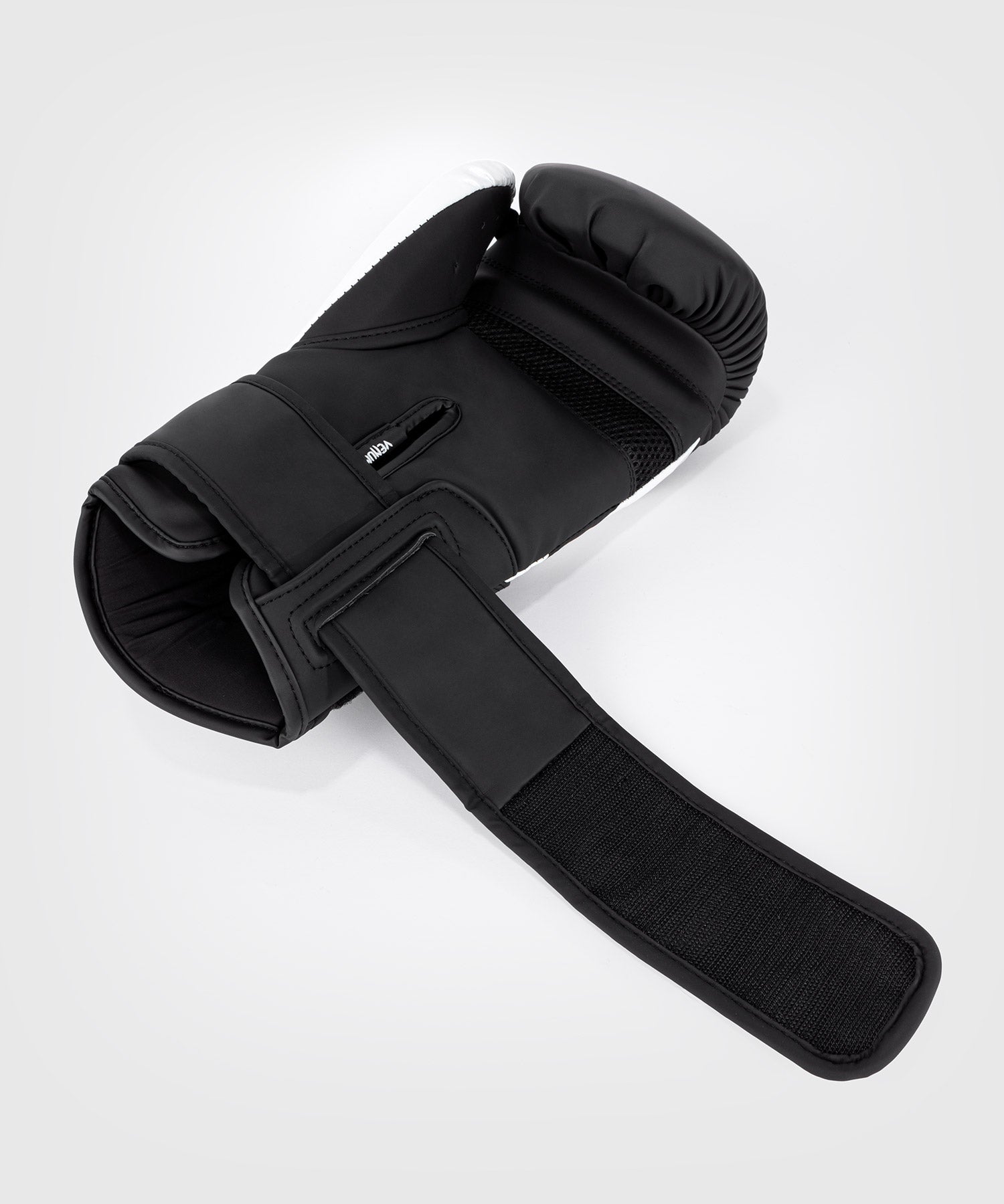 Das Design des Handschuhs spielt mit dem Venum Schlangenkopf-Logo in Schwarz und Weiß.