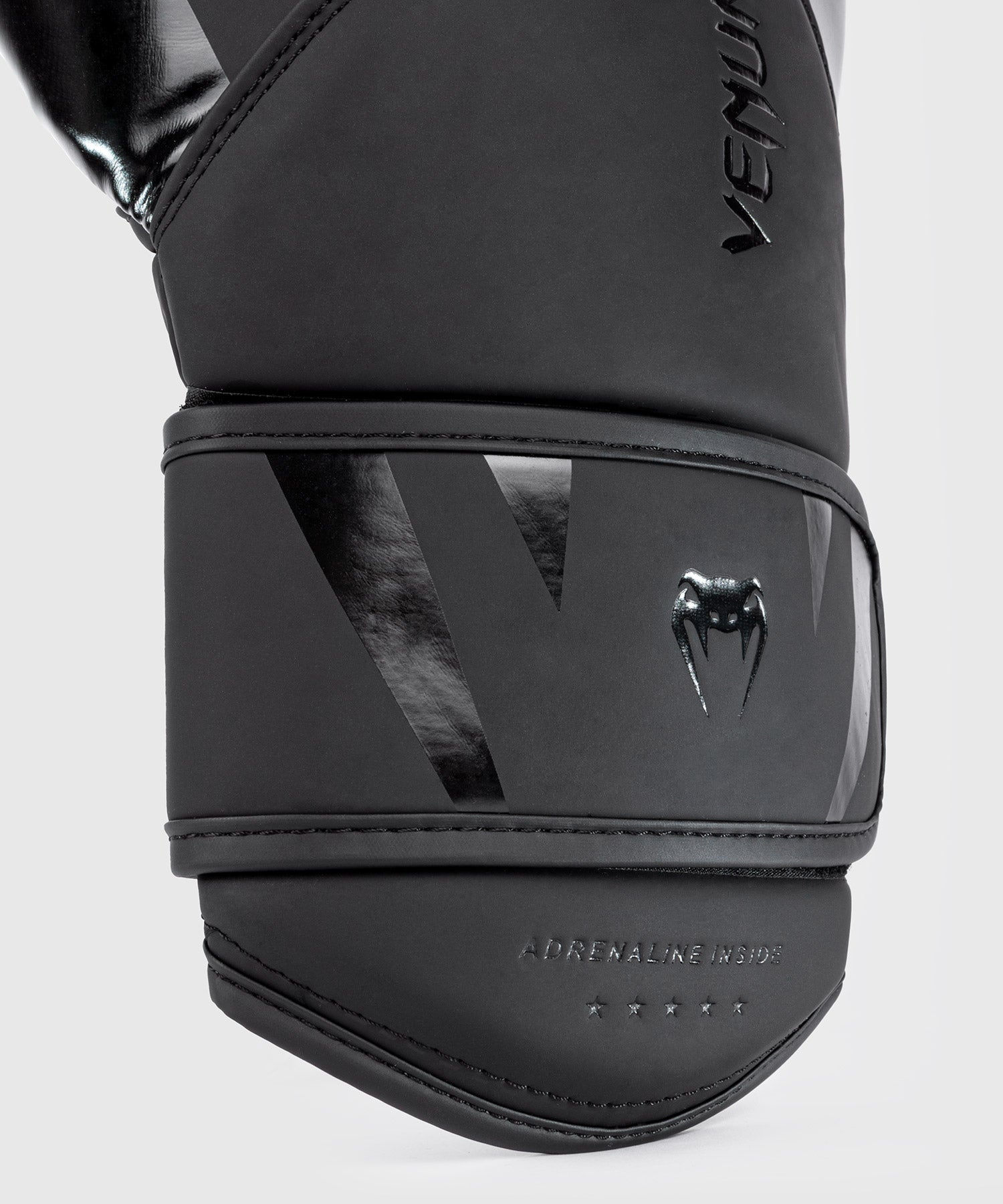 Das Design des Handschuhs spielt mit dem Venum Schlangenkopf-Logo in Schwarz und Weiß.