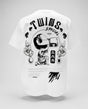 Bei dem Entwurf dieses Shirts steht die erkennbare Identität von Twins Special im Mittelpunkt. Die Vorderseite ist mit dem bekannten Logo versehen, während die Rückseite einen großen, auffälligen Grafikprint enthält, der von der klassischen Kampfkultur inspiriert ist. Dank der hochwertigen Siebdrucktechnik bleiben die Abbildungen scharf sowie farbecht, auch nach häufigem Waschen. Die weiße Farbgestaltung verleiht dem Shirt einen frischen, zeitlosen Look, der sich einfach mit einem sportlichen oder lässigen Outfit kombinieren lässt.