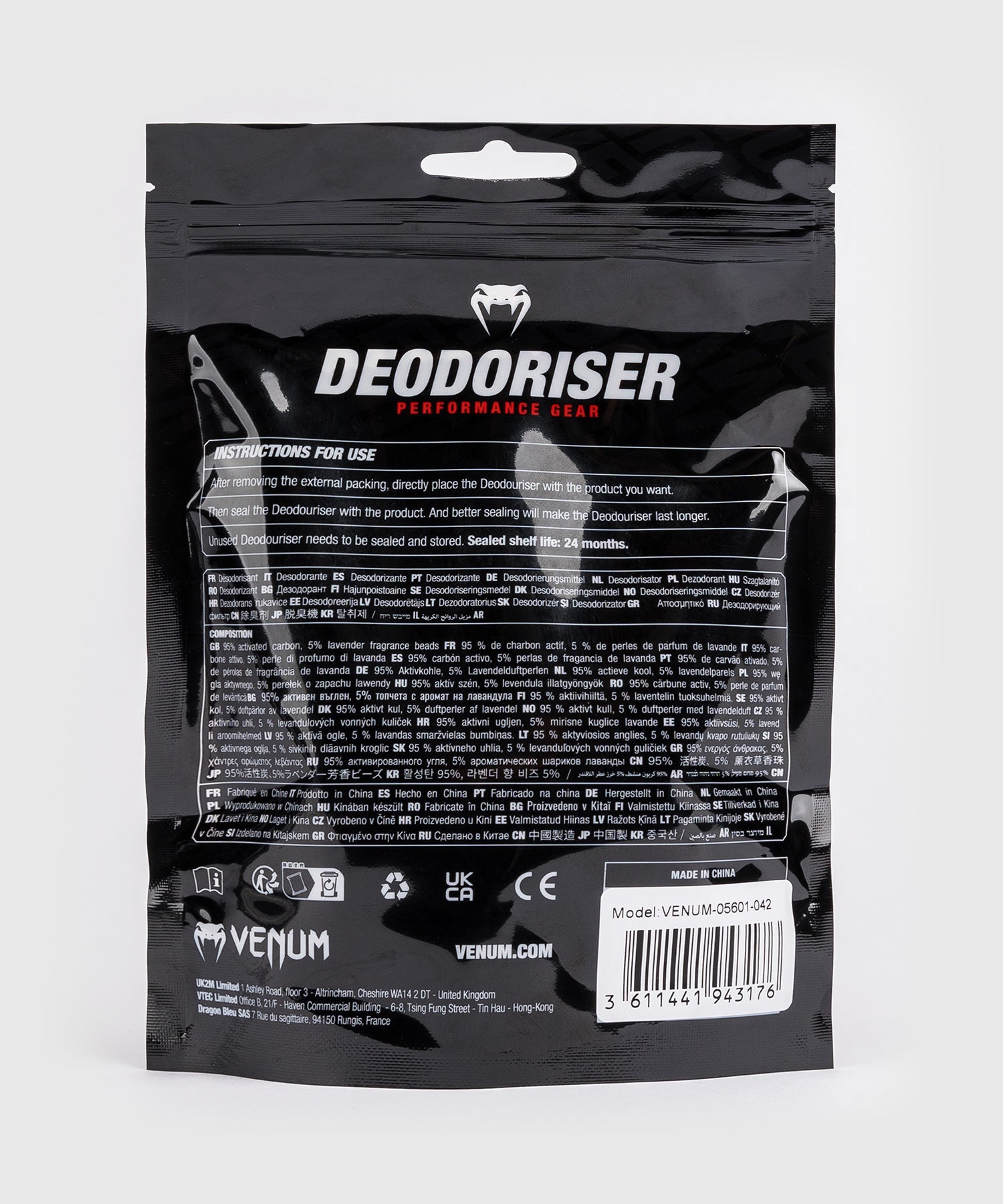 Der Venum Kontact Glove Deodorizer verlängert die Lebensdauer Ihrer Boxhandschuhe und verhindert unangenehme Gerüche. Die leistungsstarke, vollständig natürliche Formel mit Bambusholzkohle absorbiert Feuchtigkeit und neutralisiert Gerüche im Inneren Ihrer Handschuhe.